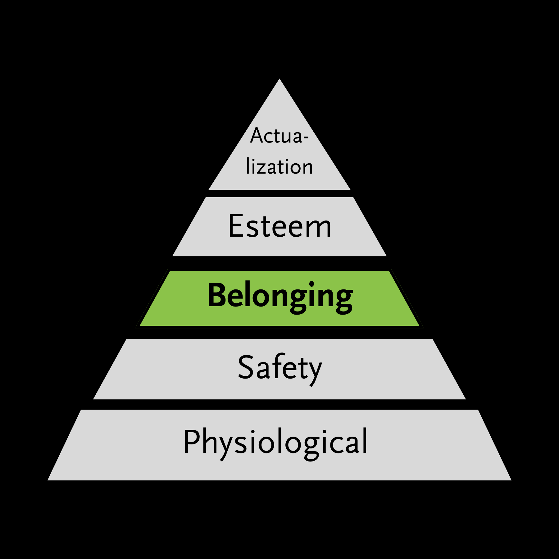 Caption: Abraham Maslow, a 20th-century American psychologist, devised the theory of the Hierarchy of Needs, which posits that all human beings share core needs that must be fulfilled to achieve one’s full potential. Often depicted as a pyramid, the hierarchy includes belonging as a key human need.