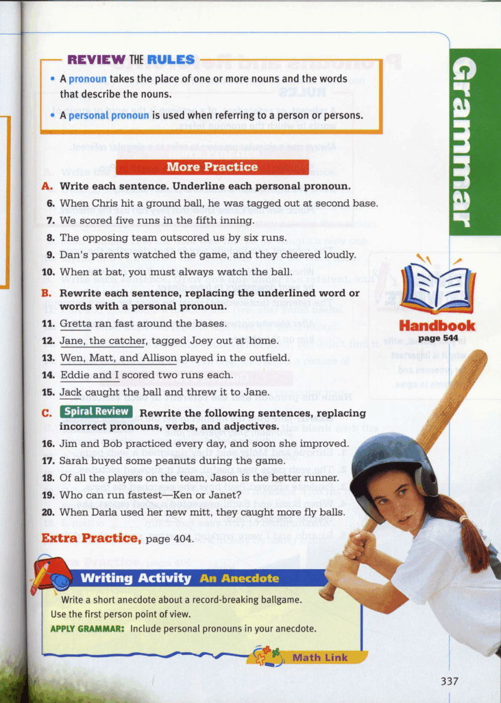 Caption: Left: A chapter in a 2013 high school social studies textbook depicts a multiracial group of children smiling and holding an American flag. Right: A 2005 language arts textbook depicts a student with a ponytail preparing to hit a baseball. Though textbook images have become increasingly racially diverse and tend to represent equal shares of male- and female-presenting individuals, research indicates that attempts to make curriculum meaningfully diverse are lacking.